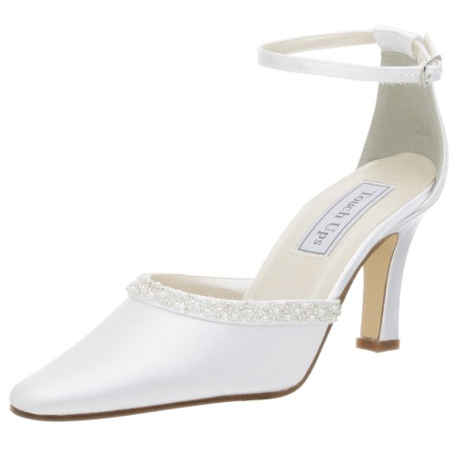 So you're going to the chapel, and you want your bridesmaids in passion pink? Or maybe powder blue? This two-piece pump from Touch Ups is the answer to your color and fashion needs. Made with a dyeable satin upper, the Meredith features pointed toe styling, a flattering ankle strap, and stylish beading detail along the vamp. A non-skid leather outsole will keep you steady on the dance floor, and the stately heel will help make a lasting impression.